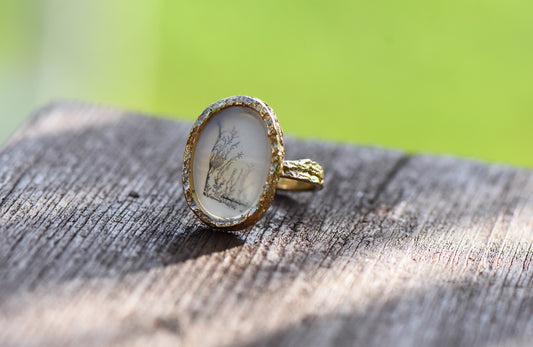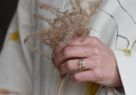 Yellow Tourmaline and Silver Reverse English Oak Ring