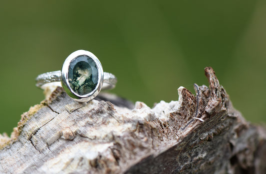 Moss Agate and Oak Ring