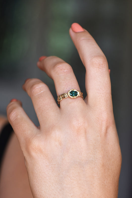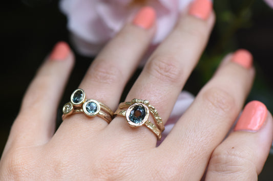 OOAK 14ct Gold and Blue Sapphire Hawthorn Ring