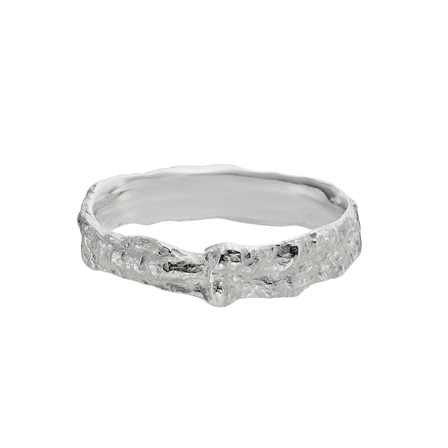 This textured band is cast from the bark of a hawthorn tree, using recycled silver.