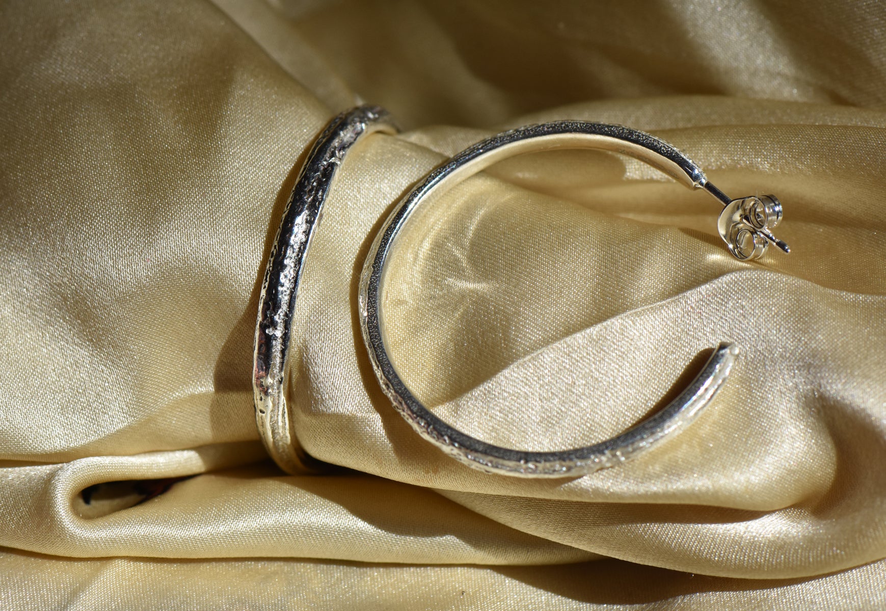 These hoop earrings have been cast directly from an English Oak tree. A perfect addition to any outfit.